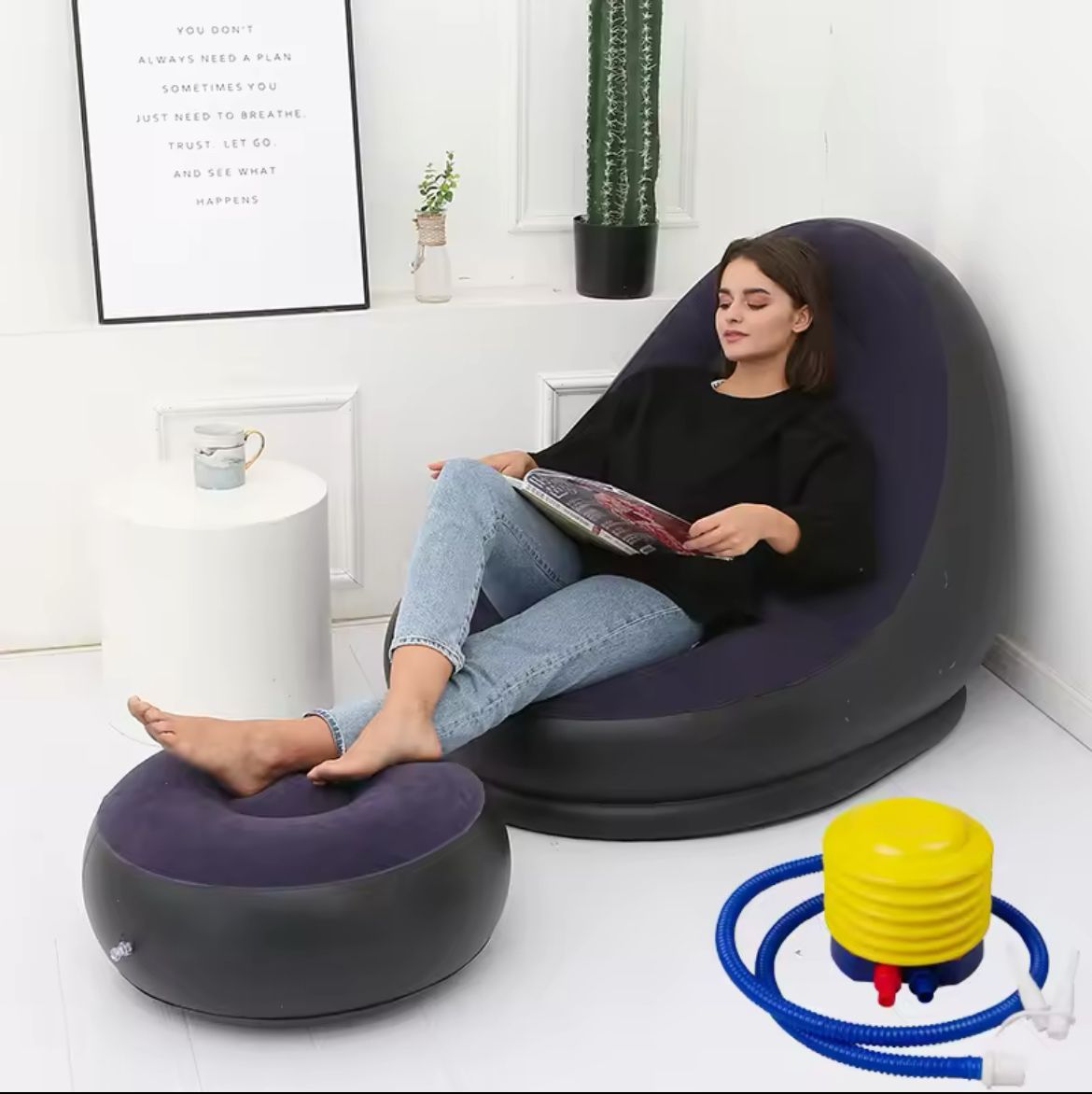 Sillas plegables portátiles inflables para exteriores e interiores con reposapiés y bomba de aire, silla reclinable para sala de estar, dormitorio, viajes, camping, picnic, playa, tumbonas